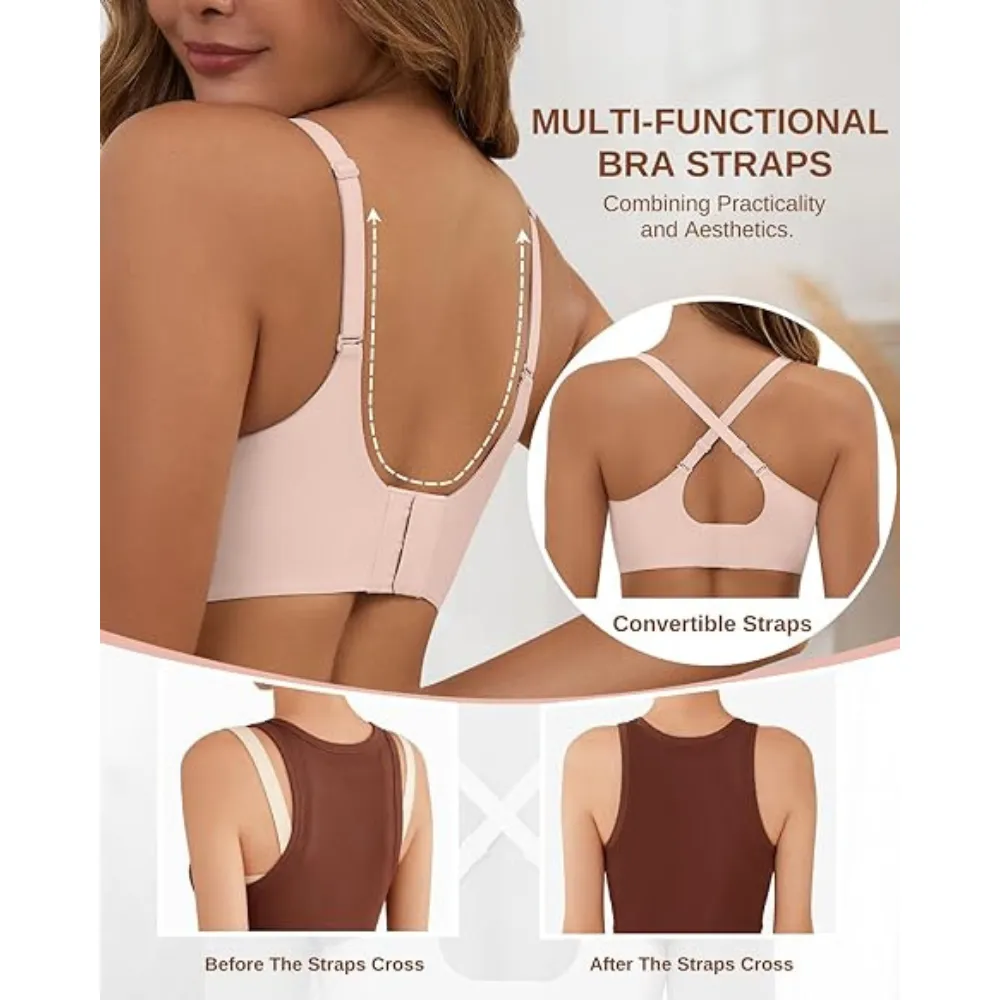 Designed for versatility, this bra includes adjustable and convertible straps that allow you to switch between different styles based on your outfit. The U-shaped back design improves weight distribution, reduces shoulder pressure, and ensures a smooth back appearance.