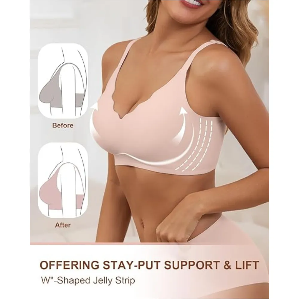 This push up bra features a unique W-shaped jelly strip support system that provides a gentle lift and enhances your natural shape. Unlike traditional wired bras, it offers support through innovative structure, ensuring comfort while maintaining a defined silhouette.