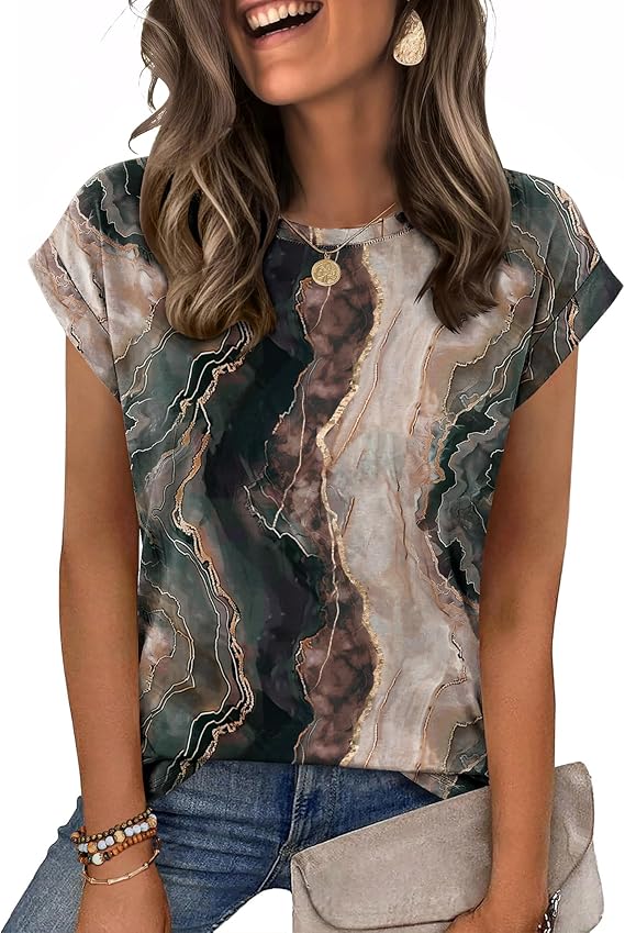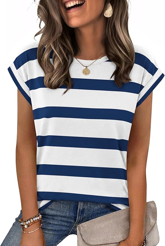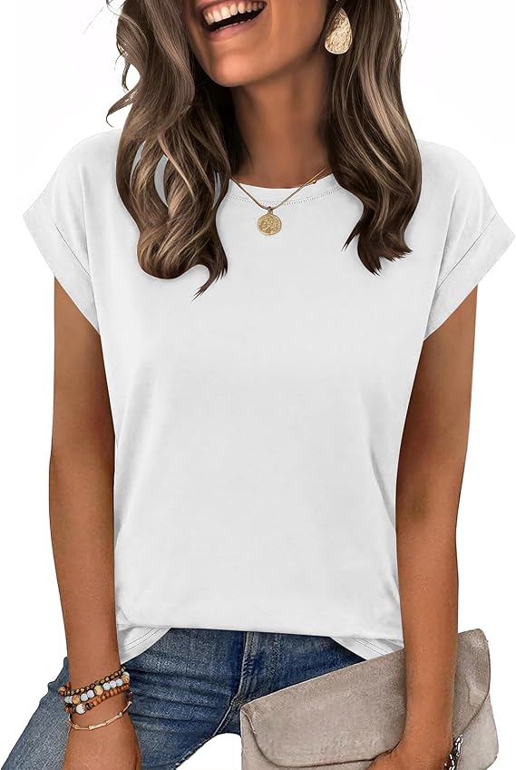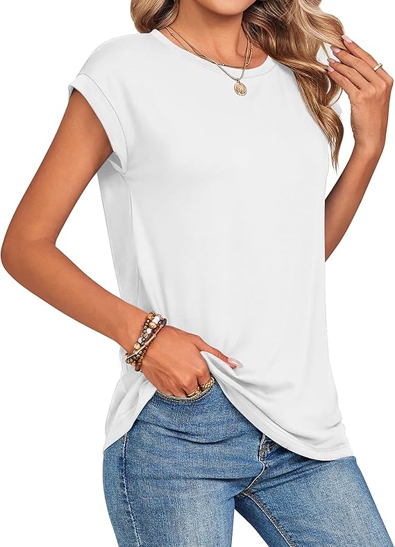 Women Summer Casual Cap Sleeve T-Shirt Dressy Business Casual Tops for Women Trendy Fashion Outfit