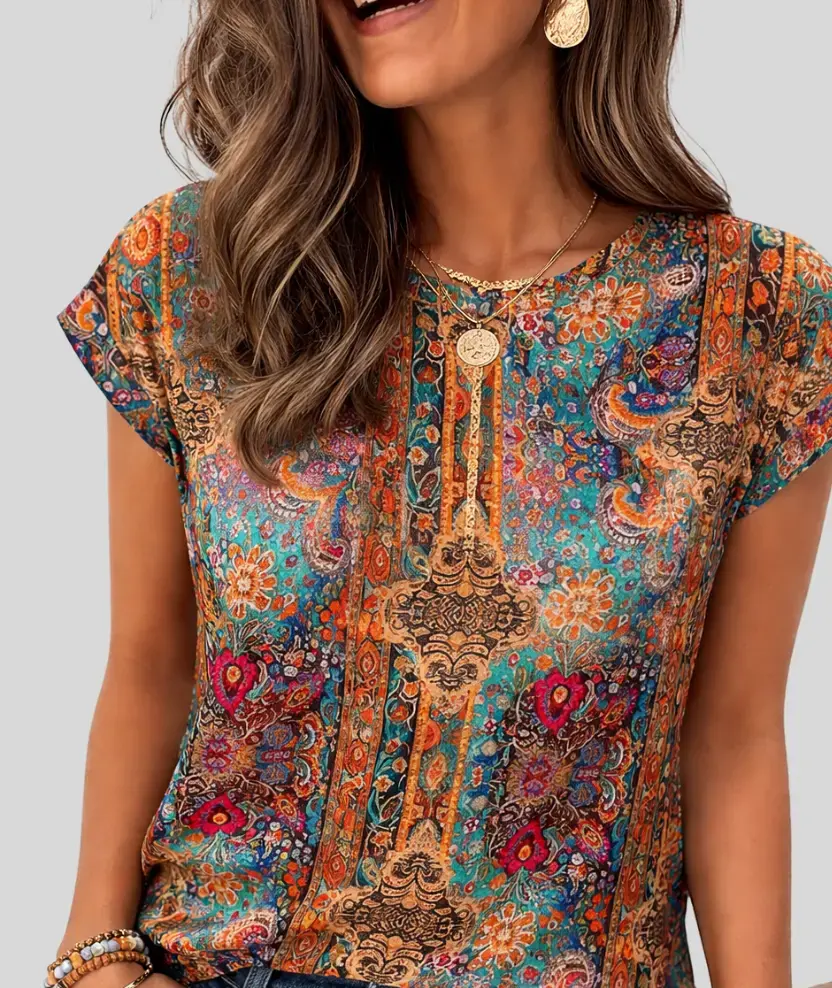 Made from a soft and breathable polyester blend, this trendy women’s outfit top ensures all-day comfort in warm weather while also working perfectly as a layering piece in cooler seasons. Its lightweight fabric allows easy movement and a smooth feel on the skin.